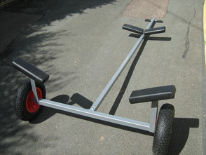 These robust launch trolleys are made from galvanised steel and have pneumatic tyres. They are capable of holding dinghies/RIBs/Jet Skis upto 4m in length and weighing upto 150Kg. The length is adjustable to suit the size of your boat. There is a T bar handle with rubber grip handles for ease of use and they have cushioned resting pads. They come flat packed with easy assemble instructions.